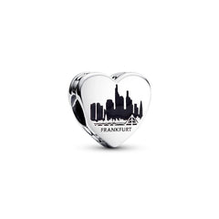 Wear your love for Frankfurt. Crafted from sterling silver, with a black enameled skyline on one side and the engraving "FRANKFURT", it is a heart-shaped testament to a city in motion.