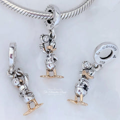 For the ultimate Disney fan - collect our Disney 100th Anniversary Donald Duck Dangle Charm and celebrate one of Disney's most iconic original characters. Outfitted in his classic sailor shirt, Donald Duck is hand-finished in sterling silver with 14k gold accents on his beak and feet. Striking a jaunty pose, Donald raises his sailor's cap to reveal a sparkling lab-created diamond. To commemorate 100 years of wonder, "Disney 100" is engraved on his side. Add him to your collection as a light-hearted reminder to look on the bright side and seek laughter every day.