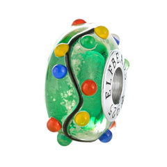Feel the holiday joy with the Christmas Lights Starlight Green glass bead. Holding this bead makes you smile, reminding you that dreams can come true and magic is real when it comes from the heart. Plus, it glows in the dark, adding a touch of enchantment to your festive bracelet designs.All our glass beads are made with the highest quality glass, sourced from all over the world. All our beads have a silver core with a 5 mm hole that fits all European bead brands. Our cores are marked with E925. This logo stands for Elfbeads and sterling silver 925.