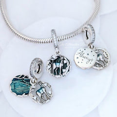 A magical emblem of eternal love, this Harry Potter, Snape Doe Patronus Dangle Charm features the doe Patronus that belonged to Lily Potter, Harry Potter's mother, who was famously the love of Severus Snape's life. Hand-finished in sterling silver, the charm features a shimmering disc of hand-applied, transparent blue enamel, wrapped in the twisting branches of the Forbidden Forest, plus a sterling silver scene of the projecting Patronus. Snape's iconic quote "Always" is engraved on the charm's reverse to represent his everlasting love for Lily.