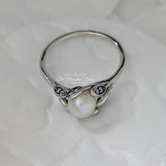 Showcasing the beauty of luminous pearls and sparkling stones, PANDORA's elegant ring features a large freshwater cultured pearl set in sterling silver and surrounded by leaves studded with cubic zirconia stones. Wear alone for maximum impact.