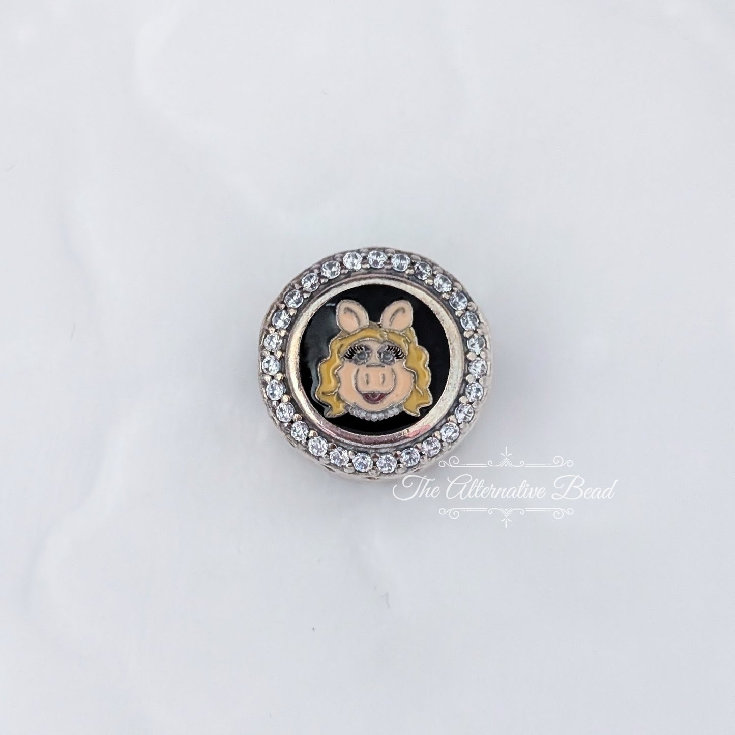 Disney x Pandora Miss Piggy Engravable Charm pink sterling-silver and enamel Bead by The Alternative Bead. Your official Disney x Pandora Retailer from Germany