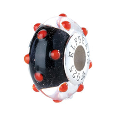 Introducing the Orange Polka Dot bead, where lively orange dots waltz through the Halloween midnight. Their spirited dance is both charming and utterly captivating, a bewitching sight in the heart of the night's enchantment. All our glass beads are made with the highest quality glass, sourced from all over the world. All our beads have a silver core with a 5 mm hole that fits all European bead brands. Our cores are marked with E925. This logo stands for Elfbeads and sterling silver 925. If you want to be sure if your bead is an original Elfbeads, you can check the logo in the core.