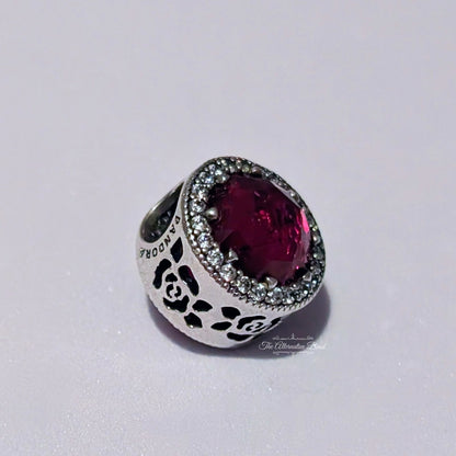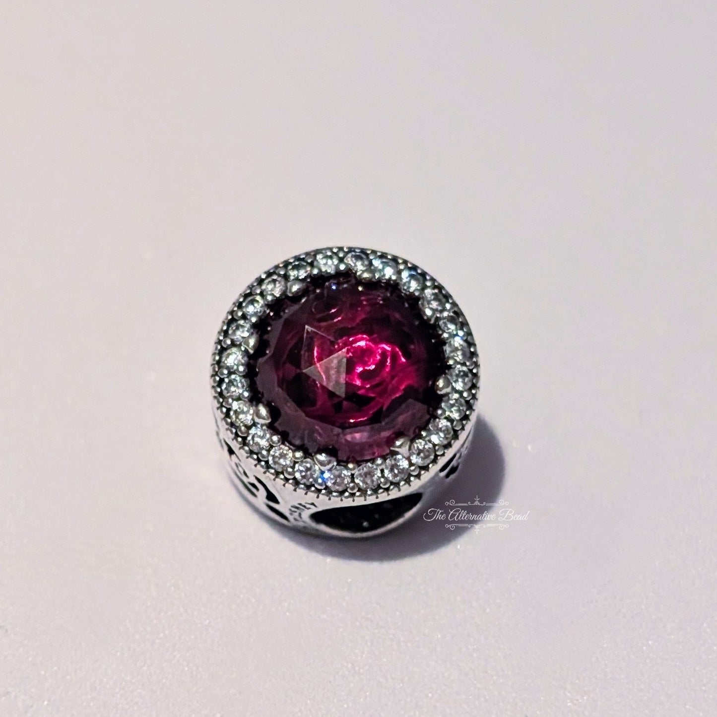 Disney Belle Enchanted rose silver charm with cerise crystal and clear cubic zirconia