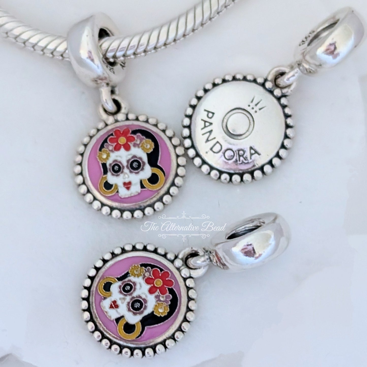 Pandora Calaca de Mujer (Dia de los Muertos Special Edition) () pink and white and red and black sterling-silver Dangle by The Alternative Bead. Your Jewelry Retailer from Germany