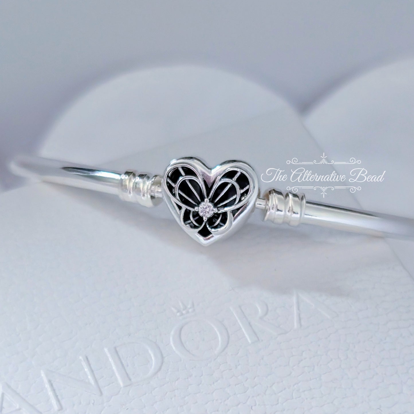 Pandora Moments Heart & Butterfly Silver Bangle (592593C01) silver sterling-silver Bangle by The Alternative Bead. Your Jewelry Retailer from Germany