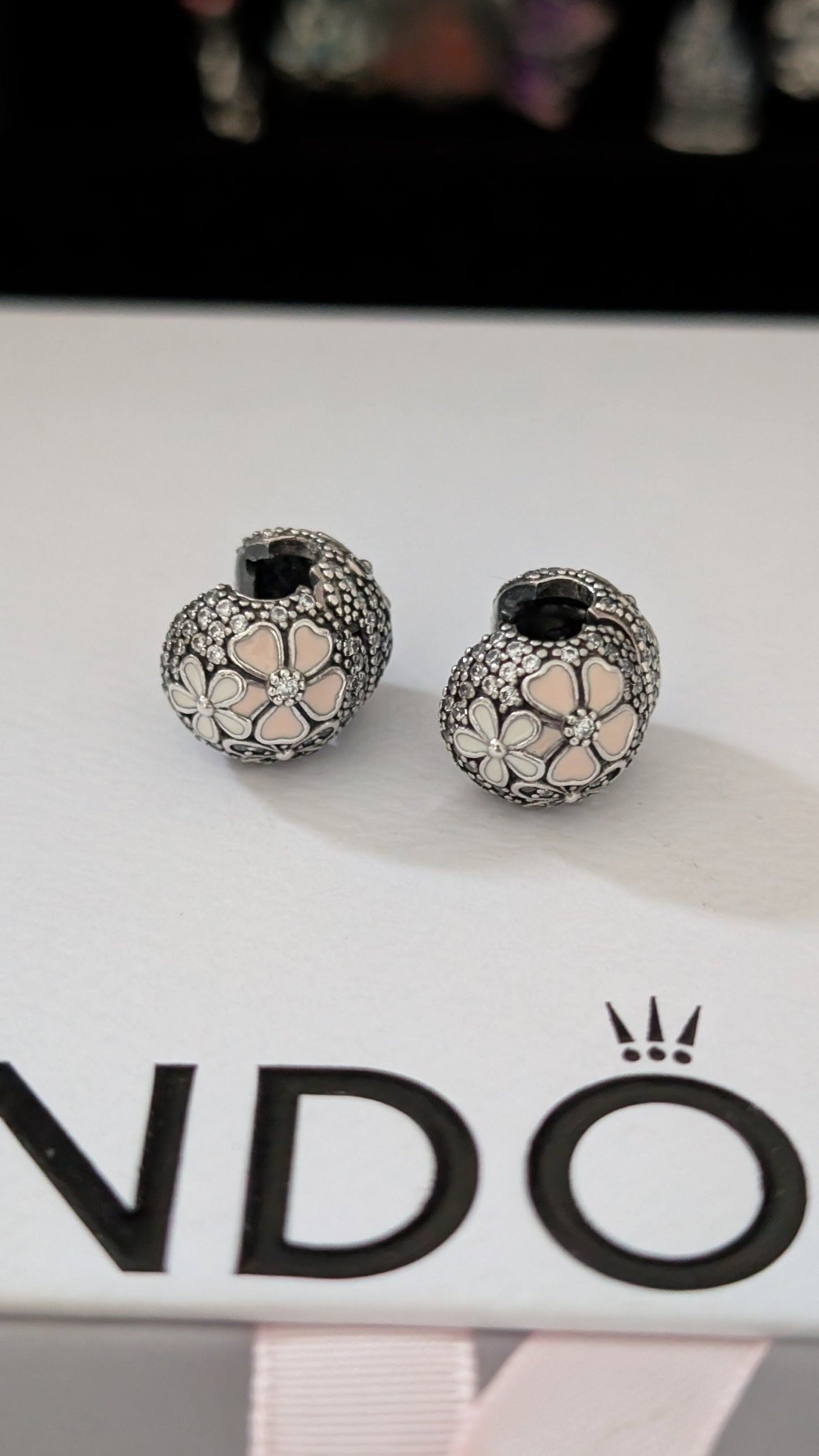 Pandora Poetic Blooms Clip (792084CZ) silver and pink and white sterling-silver and enamel Clip by The Alternative Bead. Your Jewelry Retailer from Germany