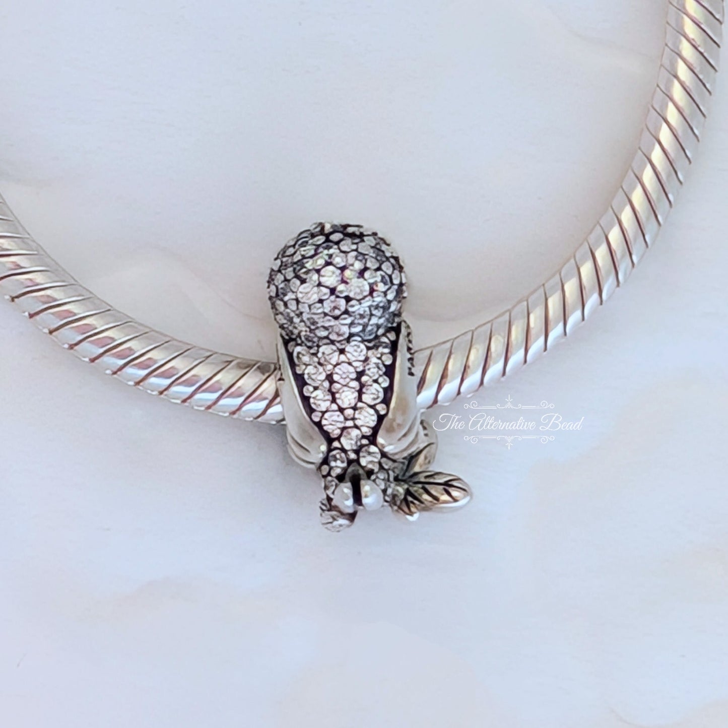 Let the stories of the things you love take flight on your Pandora Moments bracelet with this baby bluebird charm. The pretty pavé piece is shaped as Disney Snow White's feathered friend who sings with her in the woods. Despite its size, it's filled with detail: perched on a branch, the little bird is accented with cubic zirconia plumage that sparkles as it catches the light. Mix it with old and new pieces to show your love of nature or as a marker of your style story.
