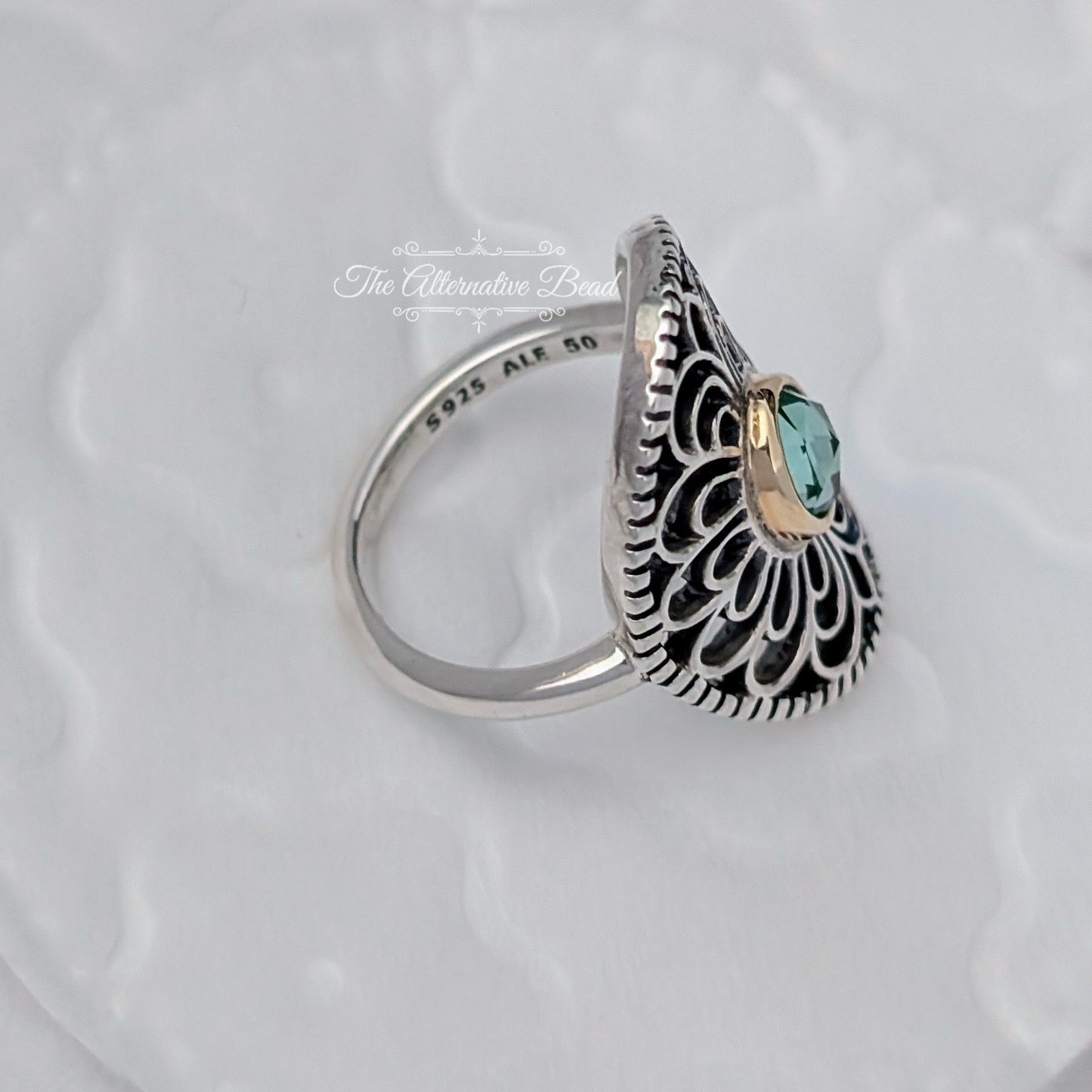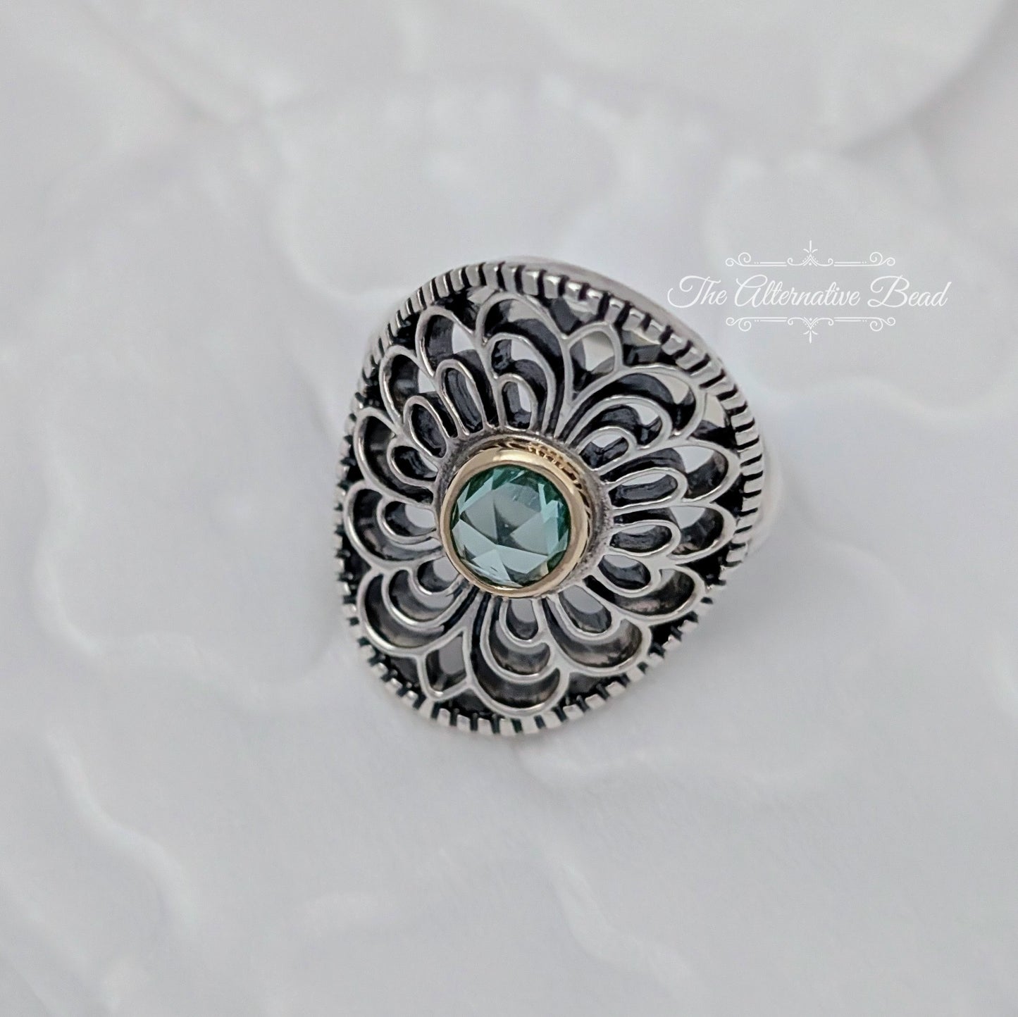 Pandora Silver ring with 14k and green synthetic spinel (190885SSG) silver and gold and green sterling-silver and gold and crystal Ring by The Alternative Bead. Your Jewelry Retailer from Germany