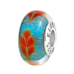 Step into the enchanting world of the Fall Sky Leaves Golddust glass bead. It's a story of autumn's beauty, where the vibrant leaves of orange dance against a backdrop of the clearest blue. This bead captures the essence of a crisp fall day when the sky itself has gifted its azure hue, sprinkled with golden stardust, to the leaves. All our glass beads are made with the highest quality glass, sourced from all over the world. All our beads have a silver core with a 5 mm hole that fits all European bead brands. Our cores are marked with E925. This logo stands for Elfbeads and sterling silver 925.