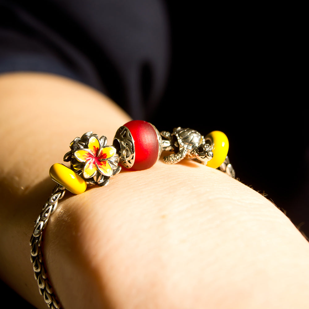 Manihi Island – Red Sea Glass Bead Sterling Silver Aurora Charm from our exclusive Glass & Silver Collection. This bead is combination of sterling silver motif with maori style ocean waves and the sea glass look. An absolute must have for every summer, beach and holiday bracelet!