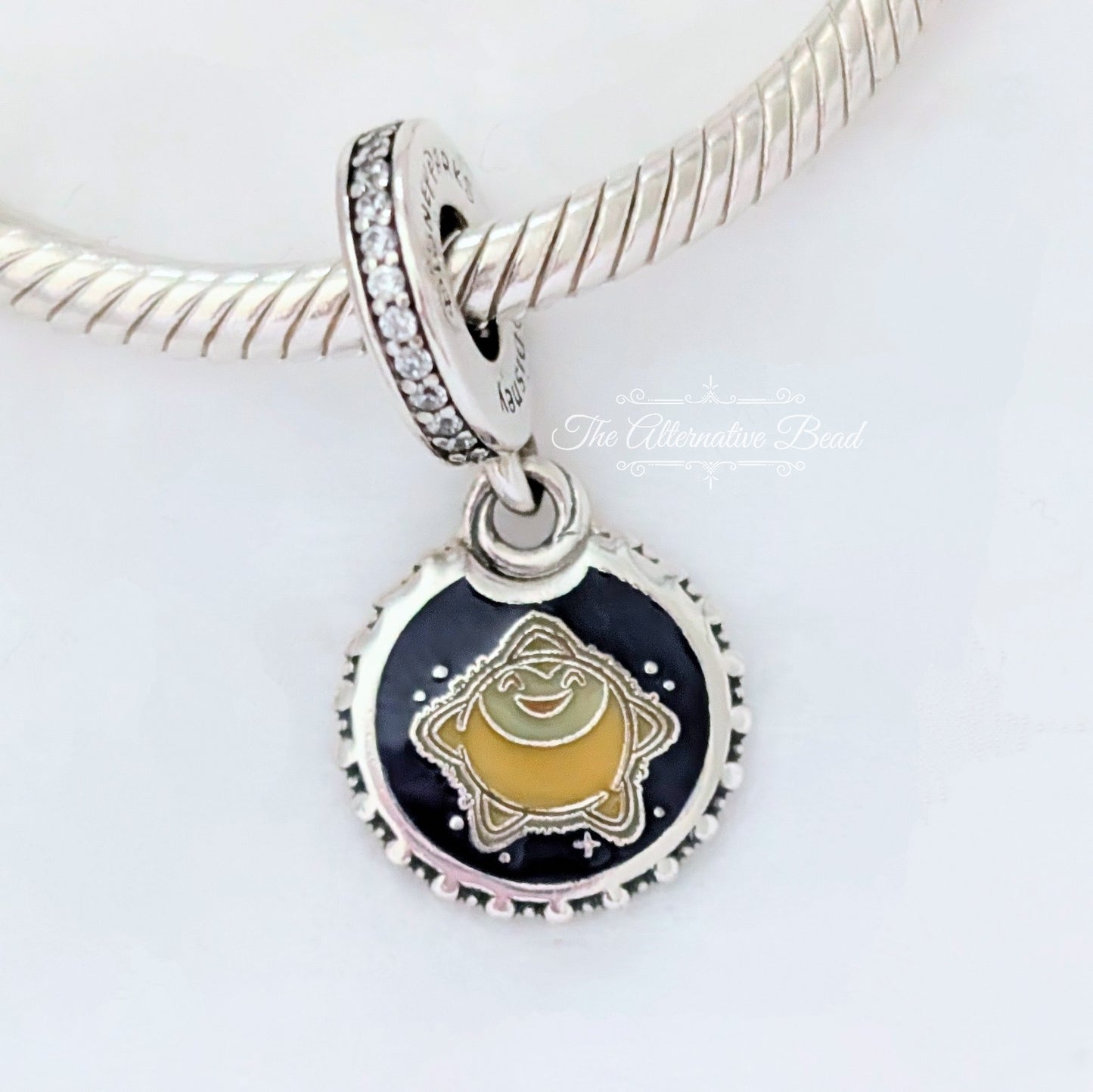 Disney x Pandora Wish Star Dangle black and silver sterling-silver and enamel Dangle by The Alternative Bead. Your official Disney x Pandora Retailer from Germany