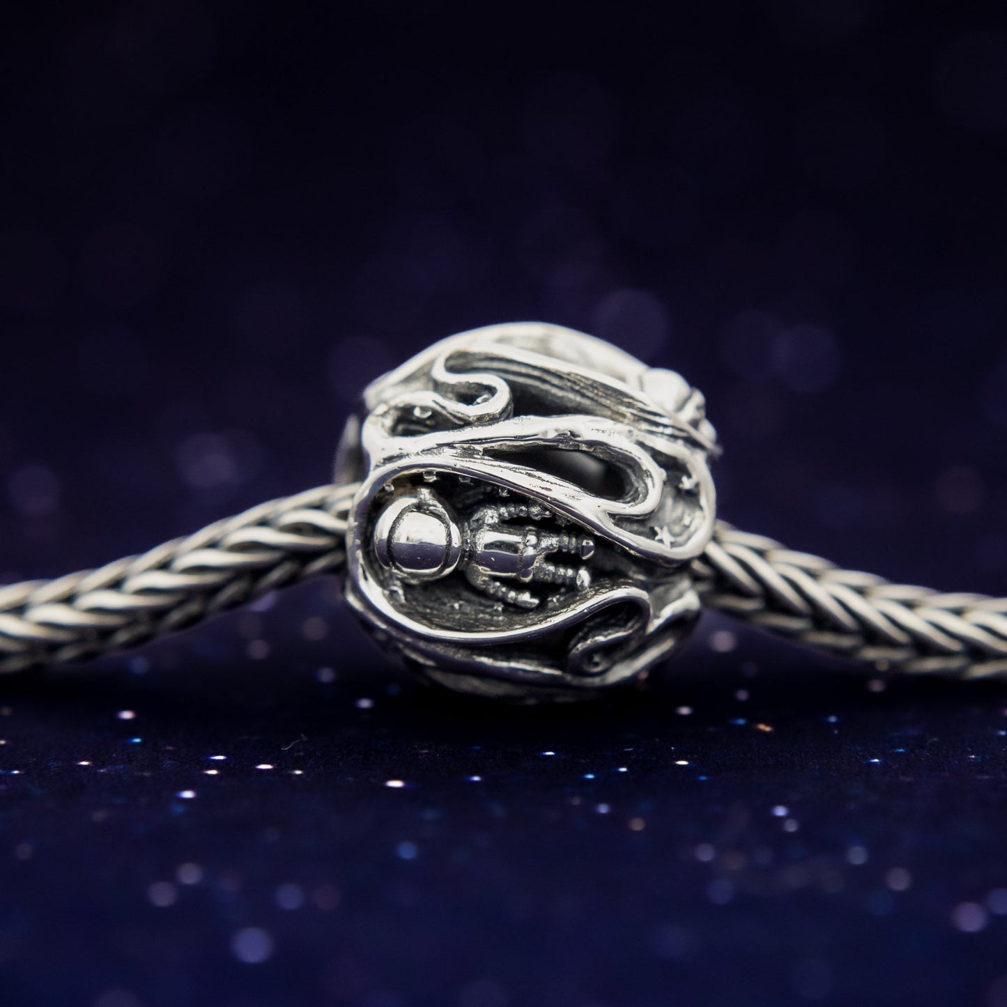 Our astronauts are fearless explorers of the Cosmos, driven by curiosity and thirst for knowledge. Our silver beads are made from the highest quality silver and are nickel free. Each bead is marked with E925. This logo stands for Elfbeads and sterling silver 925. If you want to be sure if your bead is an original Elfbeads, you can check the logo in the core.