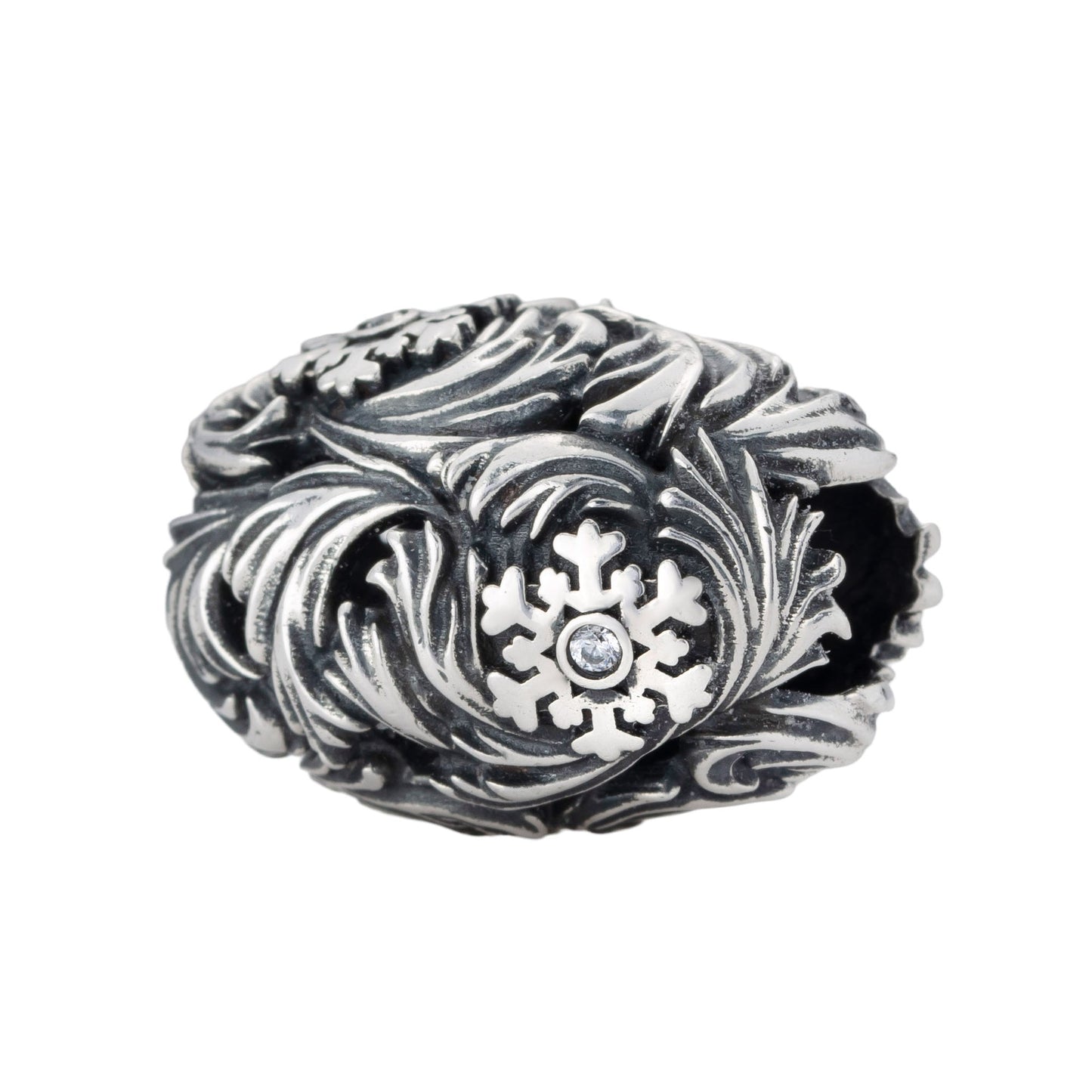 As the first frost whispers across the land, the Blizzard Gems Barrel is born - a celebration of winter's artistry. Intricate silver swirls flow across the charm, reminiscent of frost patterns forming on a windowpane, cradling snowflakes as delicate and unique as dreams. At their heart glimmer radiant CZ stones, shimmering like the first light of a frozen morning. Hold this charm close, and let it remind you of the quiet magic woven within the calm and the cold.Designed By Marina Zimina Bead dimensions: Width ~20mm; Height ~14mm; Weight ~7.2g. Contains 4 CZ stones. The 4.7mm hole fits Elfbeads, Pandora, and Trollbeads bracelets. Crafted from premium nickel-free sterling silver, each bead is marked with the E925 hallmark for Elfbeads and 925 silver..