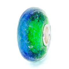 Joyful and playful Christmas bead with 2 colors complementing each other in a wonderful collaboration. Sky Blue/Green sparkling base with added faceting to capture the light. All our glass beads are made with the highest quality glass, sourced from all over the world. All our beads have a silver core with a 5 mm hole that fits all European bead brands. Our cores are marked with E925. This logo stands for Elfbeads and sterling silver 925. If you want to be sure if your bead is an original Elfbeads, you can check the logo in the core.