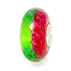 Joyful and playful Christmas bead with 2 colors complementing each other in a wonderful collaboration. Green/Red sparkling base with added faceting to capture the light. All our glass beads are made with the highest quality glass, sourced from all over the world. All our beads have a silver core with a 5 mm hole that fits all European bead brands. Our cores are marked with E925. This logo stands for Elfbeads and sterling silver 925. If you want to be sure if your bead is an original Elfbeads, you can check the logo in the core.