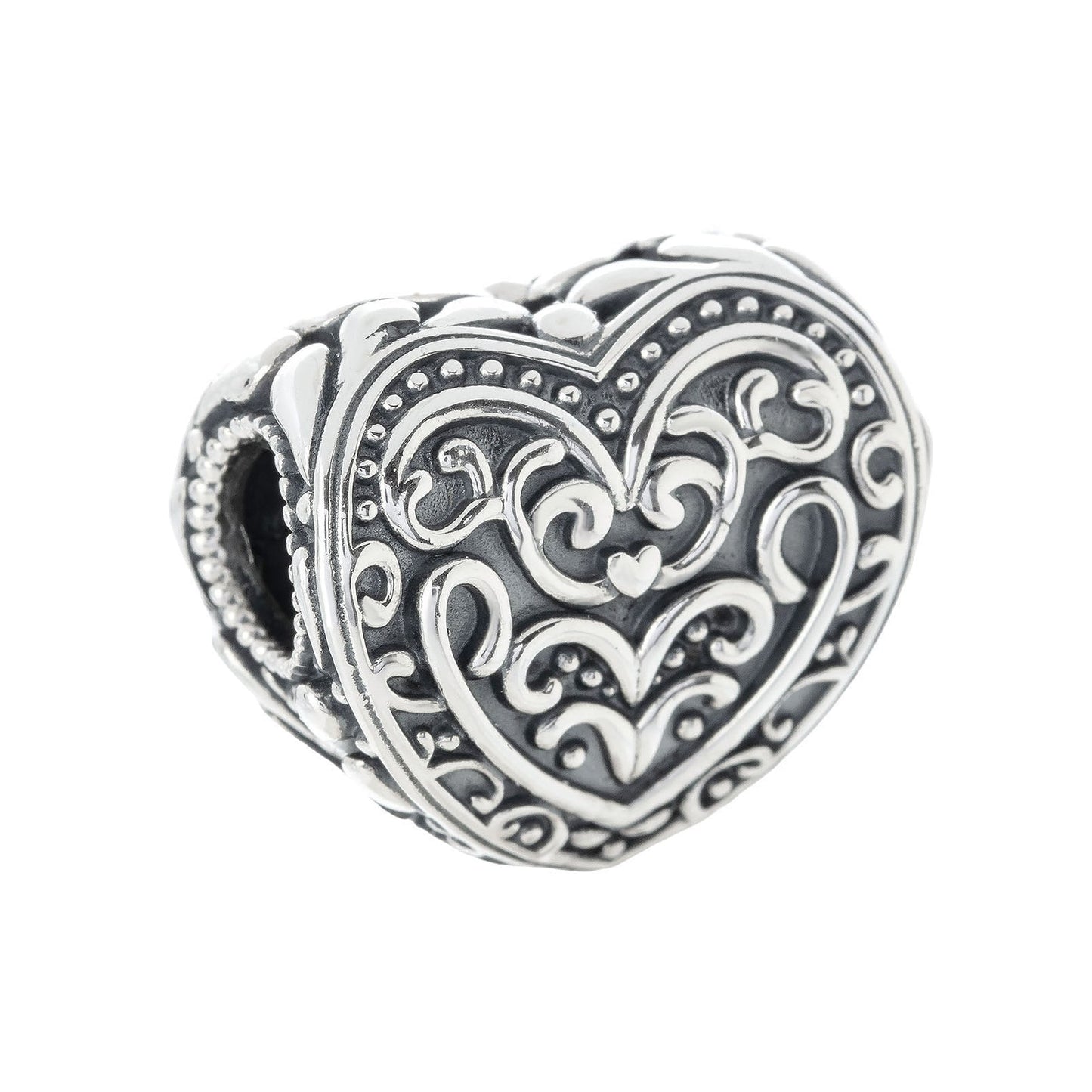 The Filigree Heart bead is a tribute to romance that transcends time. Each delicate curve and intricate pattern whispers stories of grand gestures, handwritten letters, and eternal promises. It embodies the spirit of Valentine's Day - a day when hearts speak louder than words, and love is celebrated in its purest form. Let this piece remind you that true love, like art, is detailed, passionate, and everlasting.Bead dimensions: Height ~15mm; Width ~16mm; Depth ~10mm; Weight: ~5.3g. The 4.7mm hole fits Elfbeads, Pandora, and Trollbeads bracelets. Crafted from premium nickel-free sterling silver, each bead is marked with the E925 hallmark for Elfbeads and 925 silver.