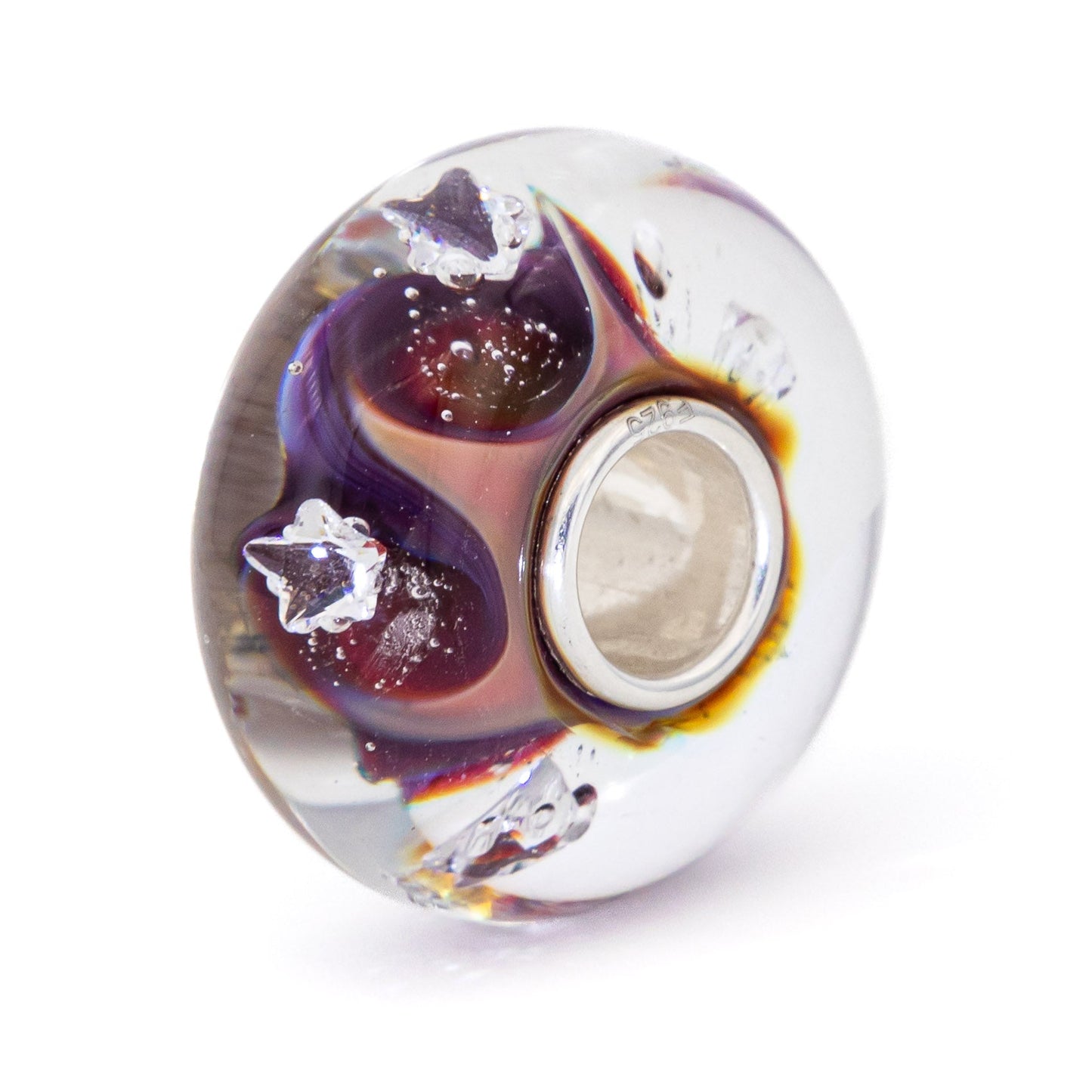 This Galaxy Dream Stars bead reflects the luminescence of distant nebulas. The stars are floating peacefully on the most mesmerizing and unpredictable background. All our glass beads are made with the highest quality glass, sourced from all over the world. All our beads have a silver core with a 5 mm hole that fits all European bead brands. Our cores are marked with E925. This logo stands for Elfbeads and sterling silver925. If you want to be sure if your bead is an original Elfbeads, you can check the logo in the core.