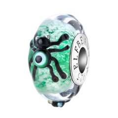 With its haunting green glow, the Ghostly Watcher Starlight bead invites you into the realm of spirits and shadows. The spiders that grace its surface carry the eyes of sinister entities from beyond, glowing with an otherworldly light. Their watchful gaze is a reminder that unseen forces are always at play, and their poisonous nature adds an edge of danger. Embrace the allure of the night, knowing that the mysteries it holds are as beautiful as they are unsettling. Our glass beads are crafted from the highest quality glass, sourced from all over the world. Each bead has a silver core with a 4.7mm hole, compatible with Elfbeads, Pandora, and Trollbeads bracelets. The core is marked with the E925 hallmark, representing Elfbeads and sterling silver 925.