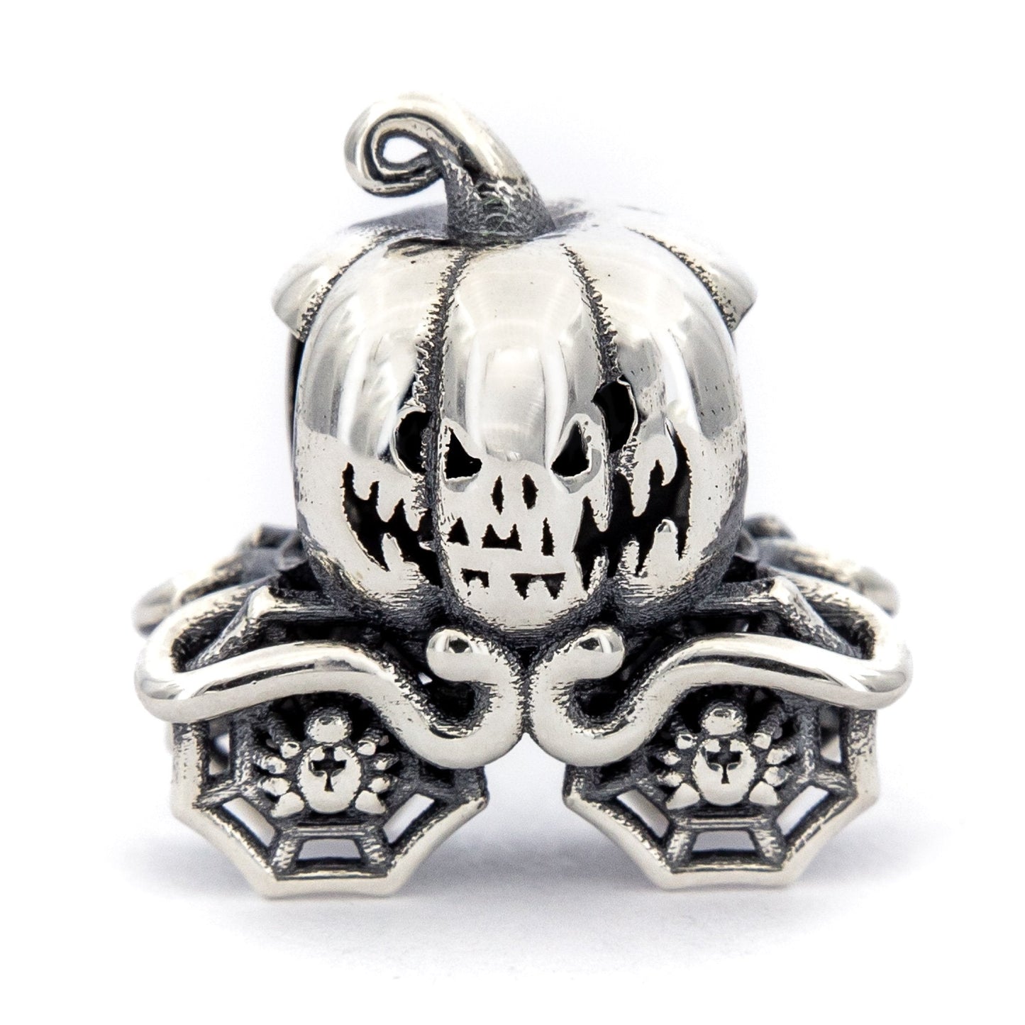 Our Pumpkin carriage moves as if by magic. Our carriage features a pumpkin that has come to life on All Hallows? Eve for a night of mischief with its eyes all aglow and its smile fixed in an eerie grin. The wheels have been fashioned from spiderwebs and the weavers of those very webs are coming along for the ride. Our silver beads are made from the highest quality silver and are nickel free. Each bead is marked with E925. This logo stands for Elfbeads and sterling silver 925. If you want to be sure if your bead is an original Elfbeads, you can check the logo in the core.