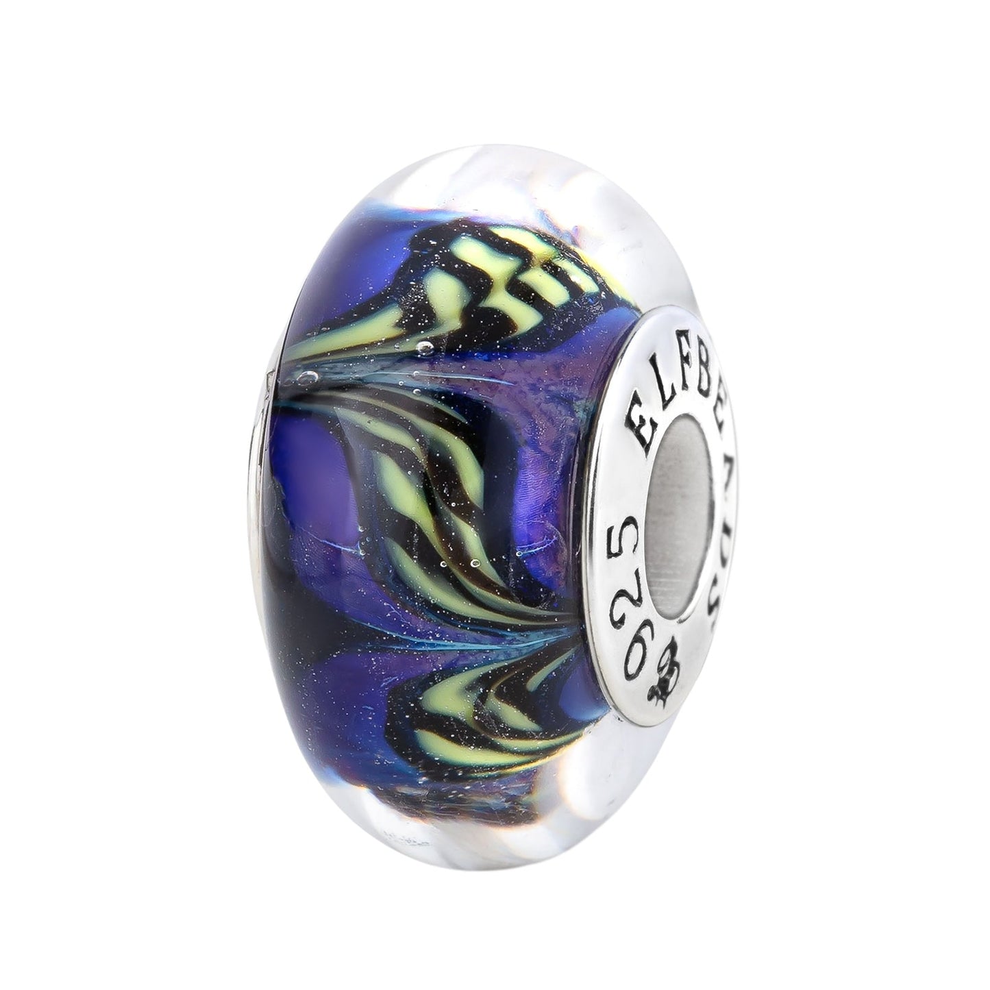 Introducing Midnight Royalty Ribbons, the perfect companion to Midnight Elegance Perpetuals. This enchanting bead features a base of pearly purple, casting a spell of pure magic. The seamless fusion of ribbons creates a regal and mesmerizing design.All our glass beads are made with the highest quality glass, sourced from all over the world. All our beads have a silver core with a 5 mm hole that fits all European bead brands. Our cores are marked with E925. This logo stands for Elfbeads and sterling silver 925.