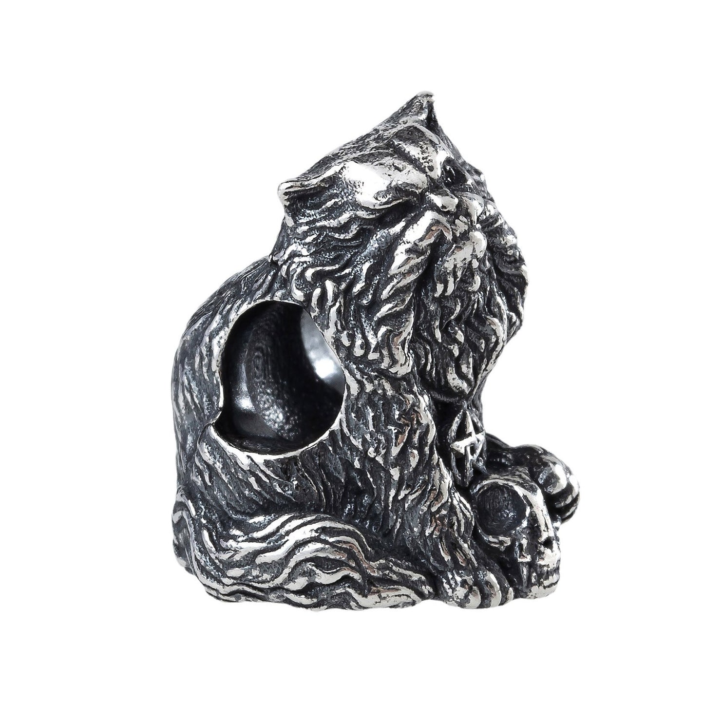 Monster Cat, the spectral sorcerer of Halloween, wields a skull and amulets as his arcane tools. His eyes ignite with ominous flashes, heralding the arrival of potent dark magic. A bewitching presence, a master of the macabre, he weaves shadows into spells that send shivers down spines. Bead height: ~16mm; weight: ~7.7 grams. Our silver beads are made from the highest quality silver and are nickel free. Each bead is marked with E925. This logo stands for Elfbeads and sterling silver 925.
