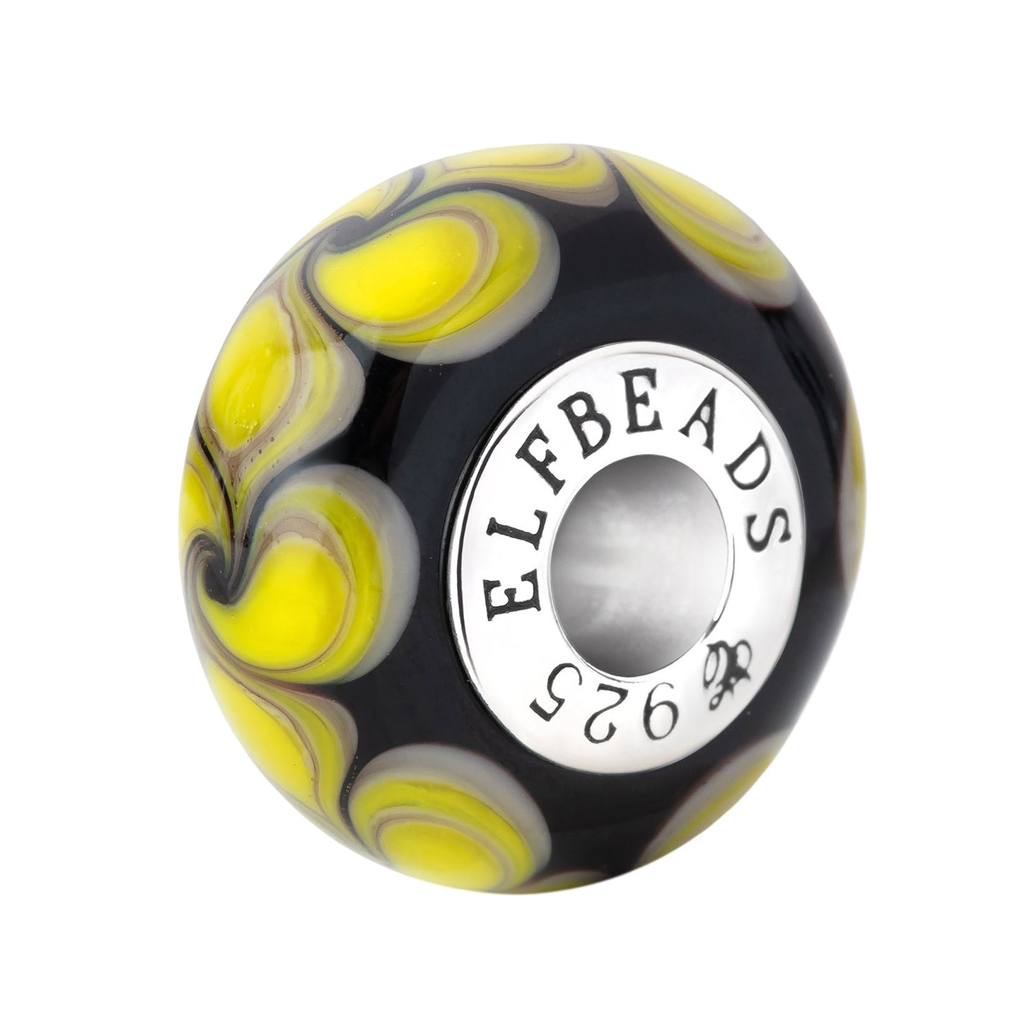 Elfbeads Moonflower Swirlstone yellow; black glass Bead by The Alternative Bead. Your official Elfbeads Retailer from Germany