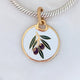 Ispirato alla ricca eredità dell'ulivo, questo charm placcato in Oro 14k simboleggia pace, saggezza e prosperità. Con dettagli smaltati in bianco, verde e viola e spazio per un'incisione personalizzata sul retro, è un pezzo significativo da aggiungere alla tua collezione.