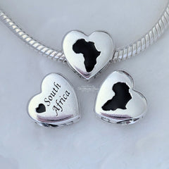 Show off your love for Africa with the Africa Map Heart Charm. This hand-finished sterling silver heart-shaped charm features the shape of the African continent in hand-applied black enamel on the front and a row of delicate hearts on the outer edge of the charm. Wear this striking piece as a stylish tribute to Africa and a reminder of the diverse, unique and vibrant beauty found in its people, culture, landscape and wildlife.