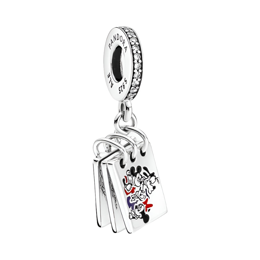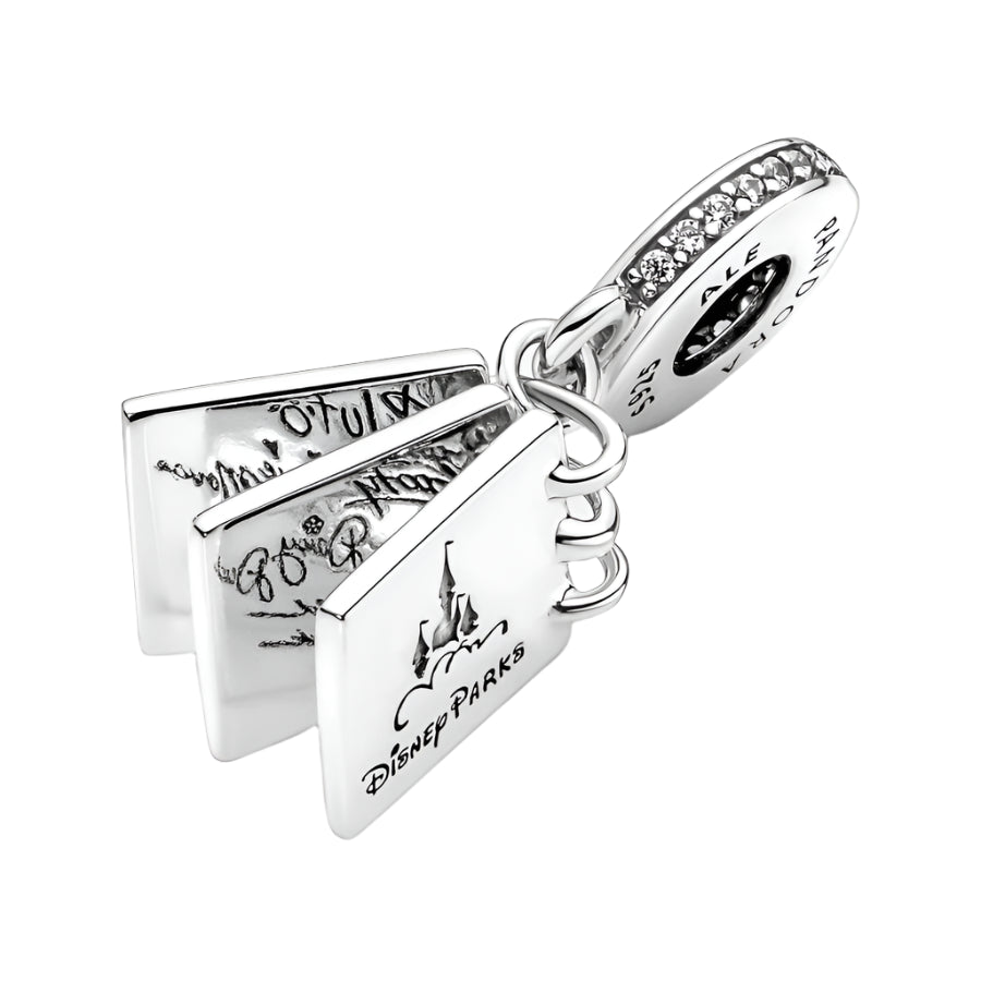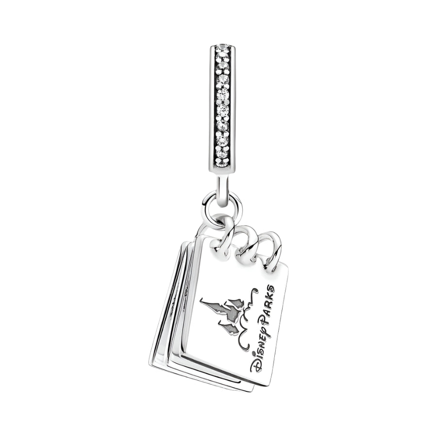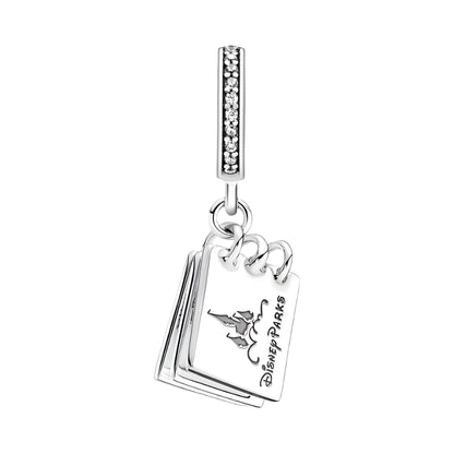 Celebrate your favourite Disney Parks memories with this colourful Disney Autograph Book Dangle Charm. The pages actually turn, with each featuring the autographs of iconic characters, including Disney's Pluto, Goofy, Mickey Mouse, Donald Duck, Daisy Duck and Minnie Mouse. With an engraving of these Disney favourites on the cover, the charm is accented with red, black and blue hand-applied enamel and 23 bead-set round brilliant-cut clear cubic zirconia on the bail.