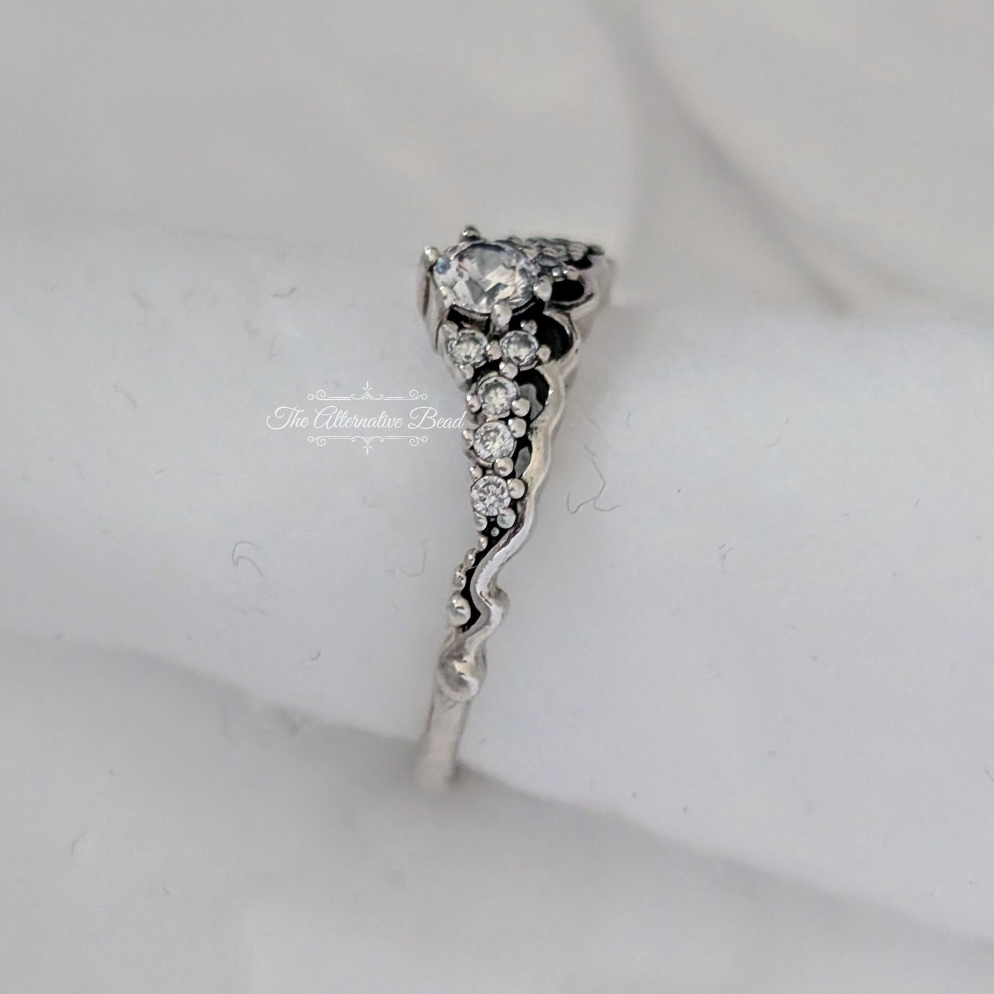 Ultra glamorous accessories ensure your style reigns supreme this season and beyond. Modernising the pieces that crowned queens in times gone by, our fairy tale ring in sterling silver takes its cues from the tiara. Expertly set with glittering cubic zirconia and made for stacking, it's perfect for layering up or across fingers — because who doesn't want to feel like a princess every day?