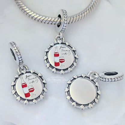 Levez votre verre aux moments spéciaux de la vie avec le Charm Pendant Gravable Verre à Vin. Hommage à la France et à sa culture du vin emblématique, elle présente un motif de bouteille et de verre réalisé en émail rouge et blanc avec la gravure « from France with ? ». Ajoutez cette pièce à votre collection pour vous rappeler que les meilleures choses de la vie valent la peine d'être savourées.