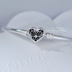 Crafted from sterling silver, this meaningful bracelet features a heart-shaped clasp that puts love at the centre, decorated with openwork detail that emulates the one-of-a-kind wings of a butterfly.